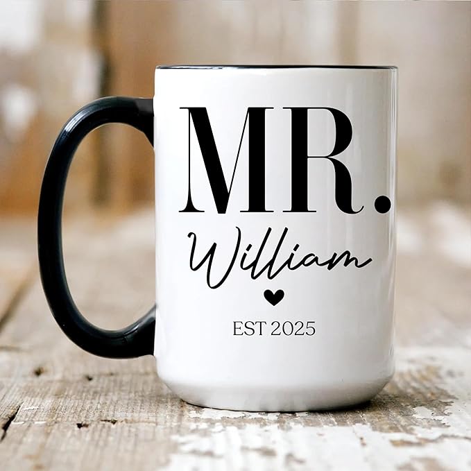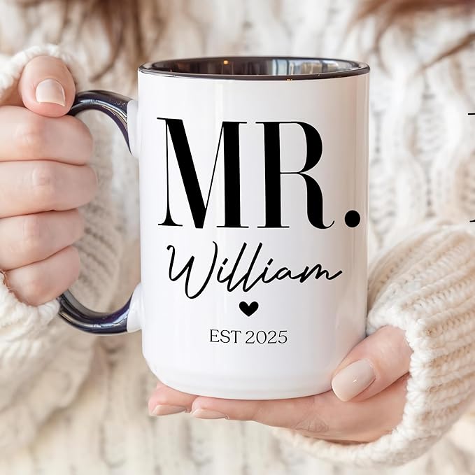 - ELEGANT PERSONALIZED DESIGN – Featuring bold “MR.” and “MRS.” prints with customizable names and established year, this mug set creates a timeless keepsake that honors milestones like weddings, engagements, anniversaries, and Valentine’s Day in style.