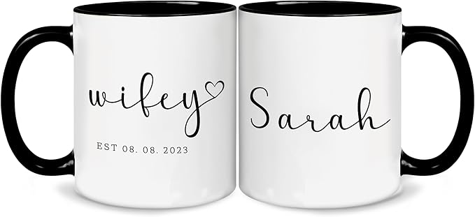 - MEANINGFUL, MINIMAL DESIGN – The coordinated “wifey” and “hubby” artwork with a delicate heart captures the spirit of partnership without clutter, so your names and date shine. Each sip becomes a small celebration of the day you said “yes,” a reminder of shared promises, and a nudge to make space for connection in ordinary moments like breakfast, late-night cocoa, or weekend coffee dates at home.