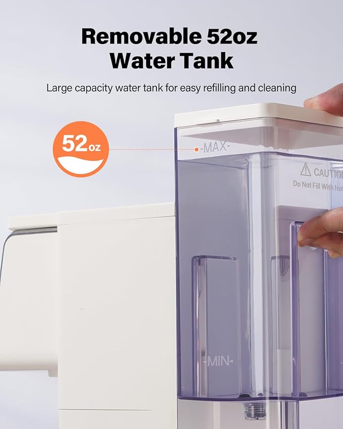 - 【52 OZ REMOVABLE RESERVOIR】Large water tank enables brewing multiple cups at once, eliminating the need for frequent refills.